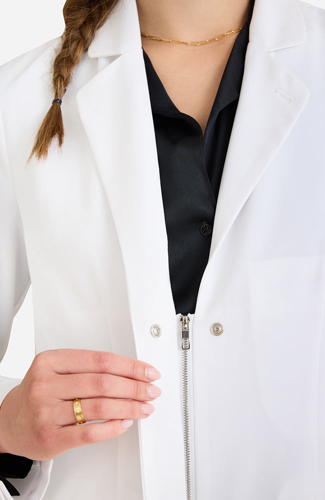 Stylish, elegant and hardworking, the Women's Fable 31" Lab Coat features a sleek design and modern silhouette that's flattering on everyone. Built with a zip front closure, hidden snap button for a secure fit and classic notched lapel, plus pockets throughout for storage and organization.