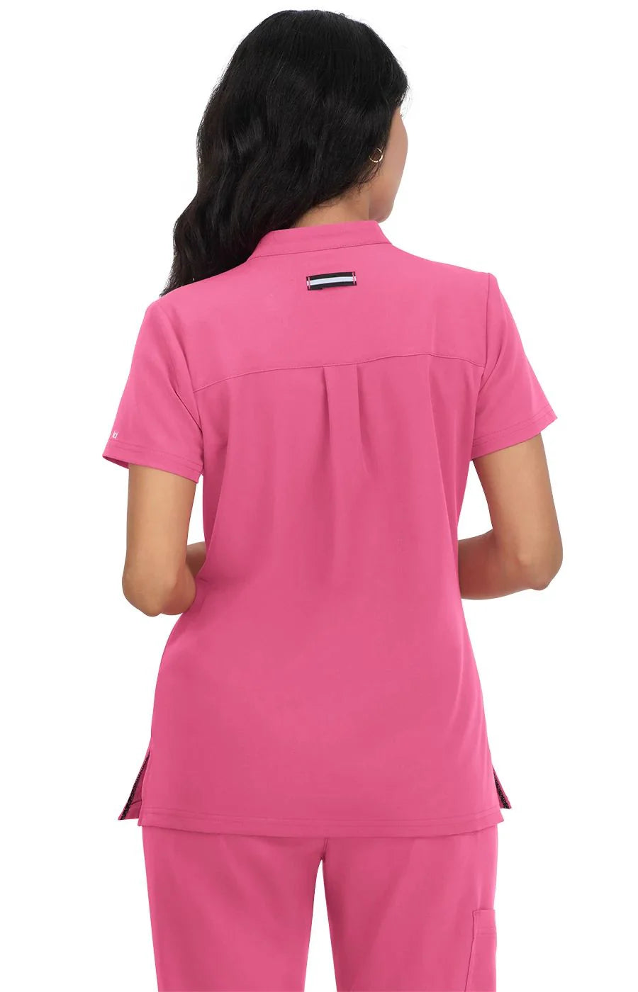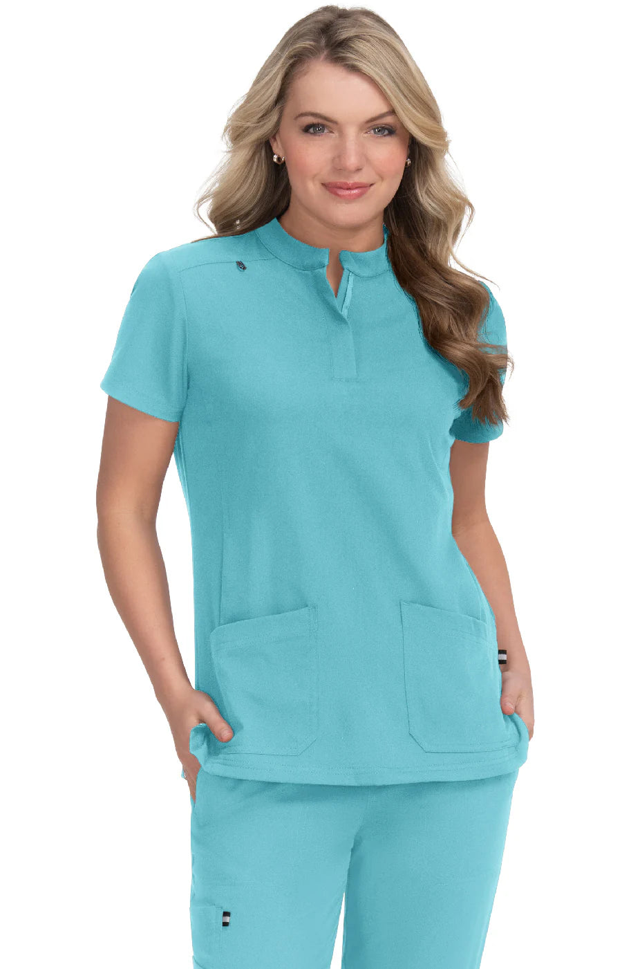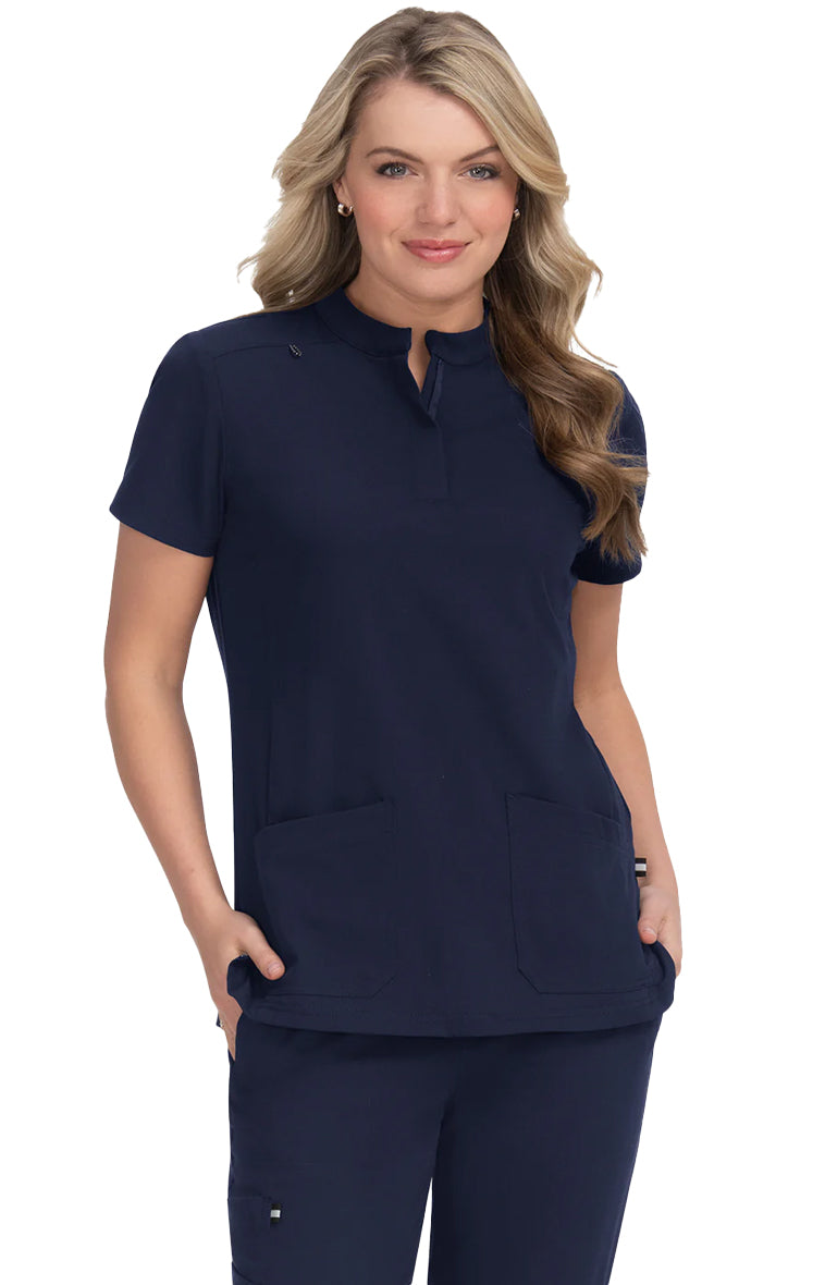 Be unique in this modern scrub top with Mandarin collar. Contemporary fit.