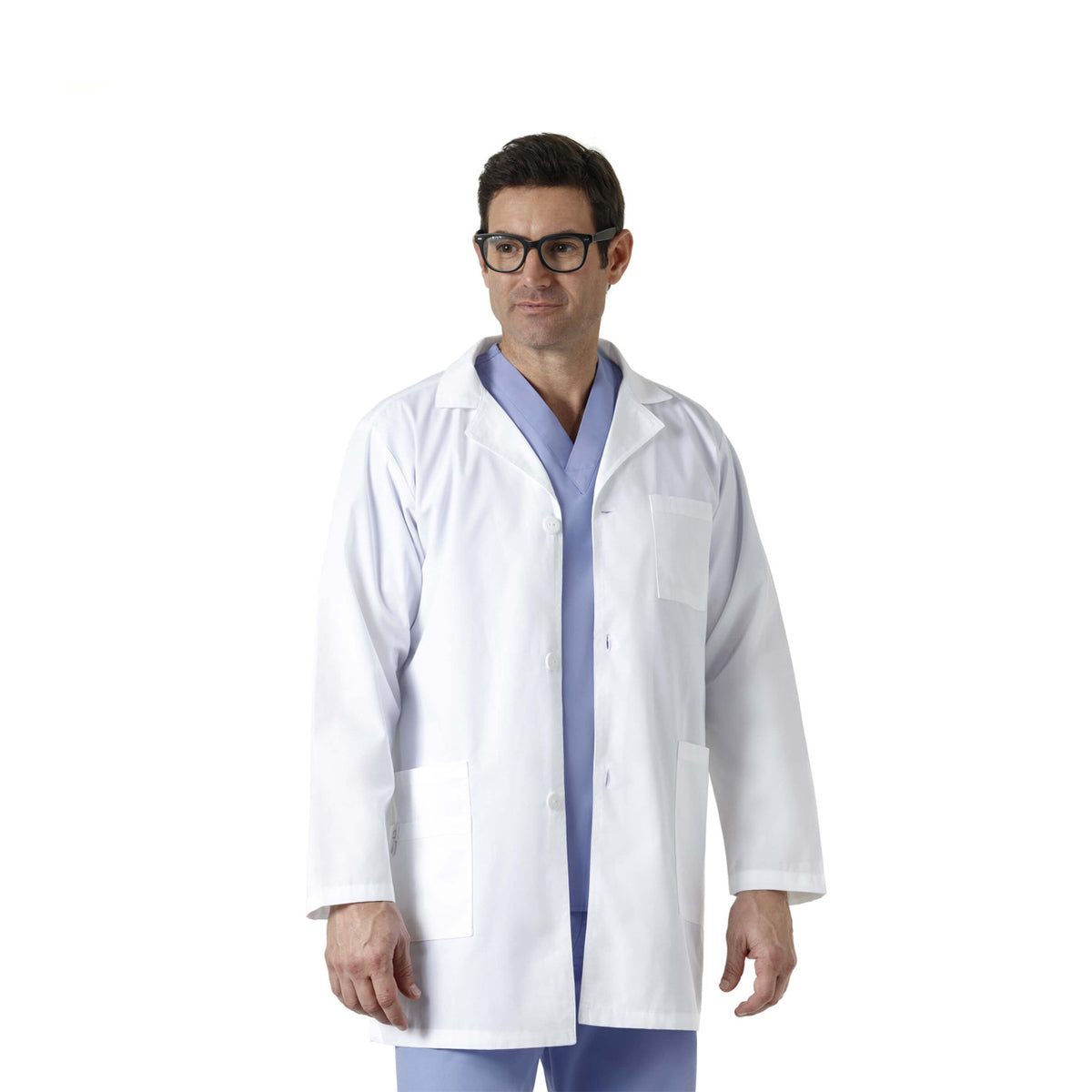 Expect comfort and functionality with a professional look at a great value. WonderWink Origins Unisex Lab Coat is crafted in a soft poly cotton blend material and also features six total pockets, including the WonderWink signature pocket with a hidden mesh pocket, two large roomy patch pockets and one scissors pocket at the left side. Special details also include three WonderWink logo buttons for closure and an ID bungee loop. Ideal for groups, the unisex lab coat is embroidery friendly for a professional look at the best value in the industry.
